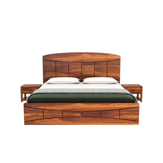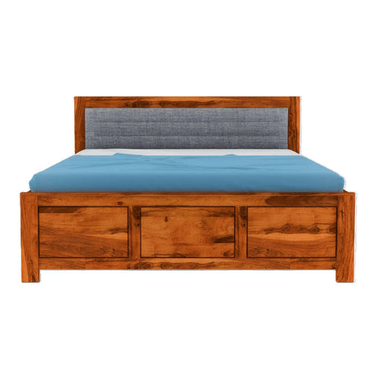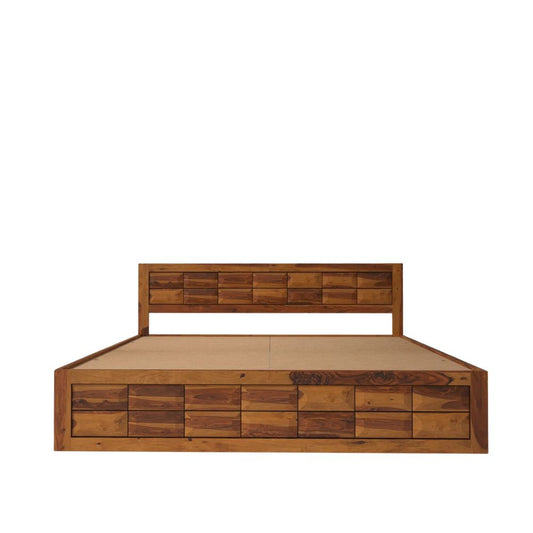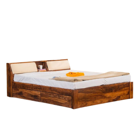 Solid Mango Wood Bed with Storage Drawers – Teak Finish Wooden Double Bed Frame