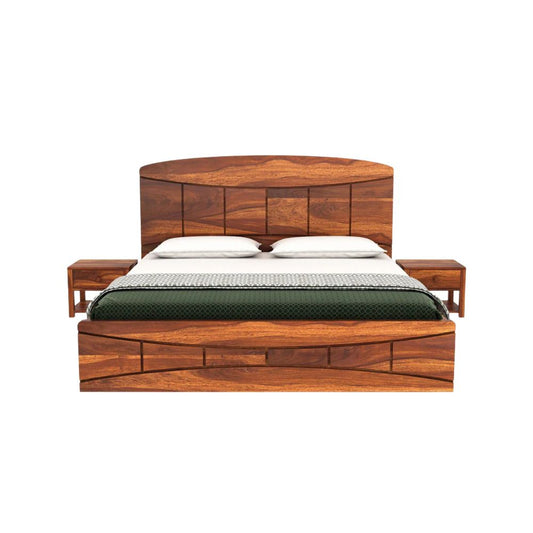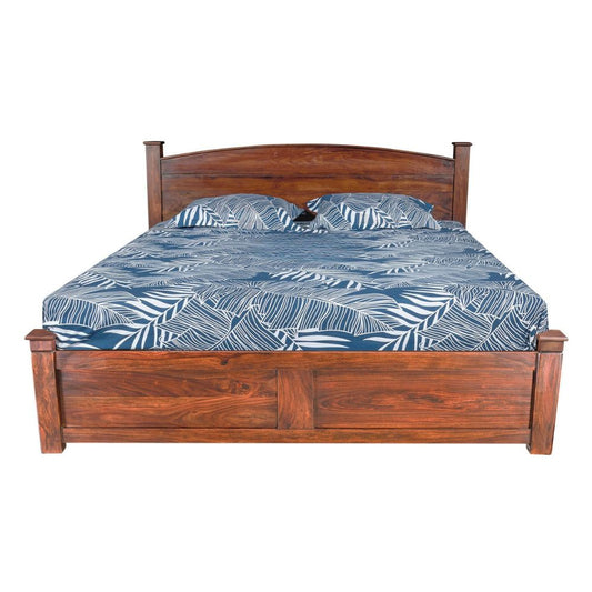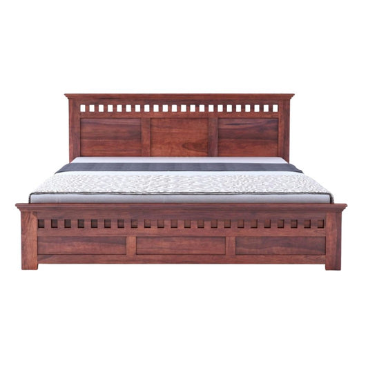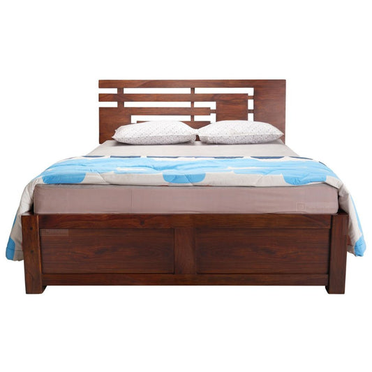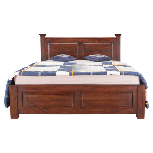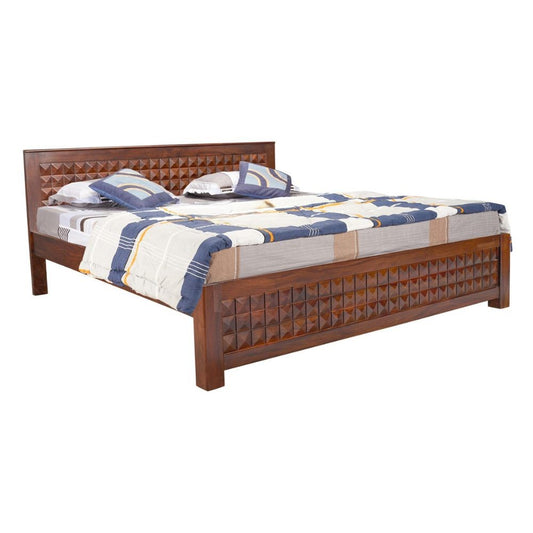 Elegant Wooden Bed Made of Acacia Wood & Plywood – Teak Polish, Strong Construction & Timeless Appeal – Available in King & Queen Sizes