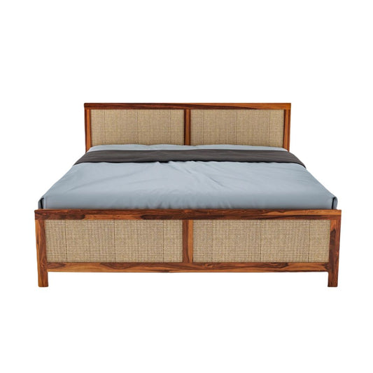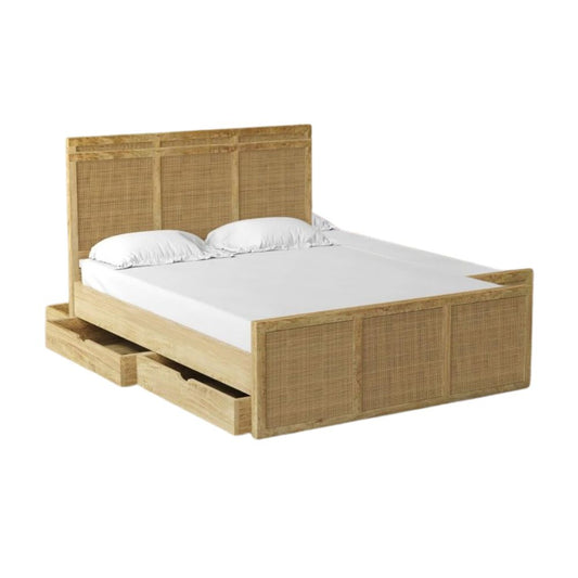 Elegant Mango Wood King Bed with Natural Cane Headboard – Sustainable Materials, Expert Craftsmanship & Warm Authentic Finish