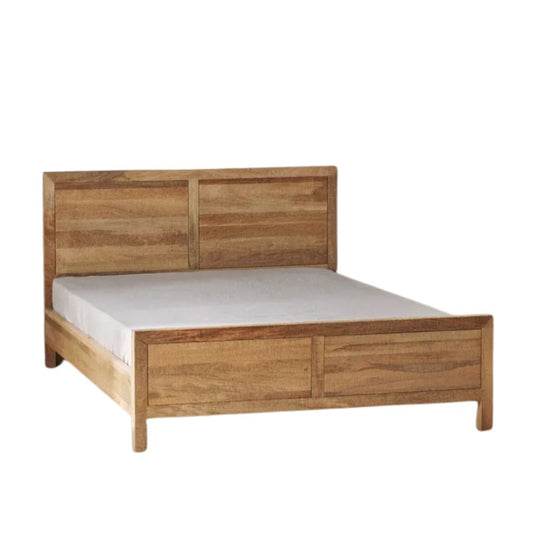 Solid Mango Wood Bed with Headboard & Footboard – Natural Finish Wooden Double Bed Frame
