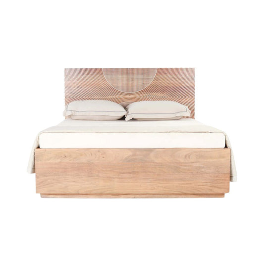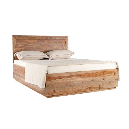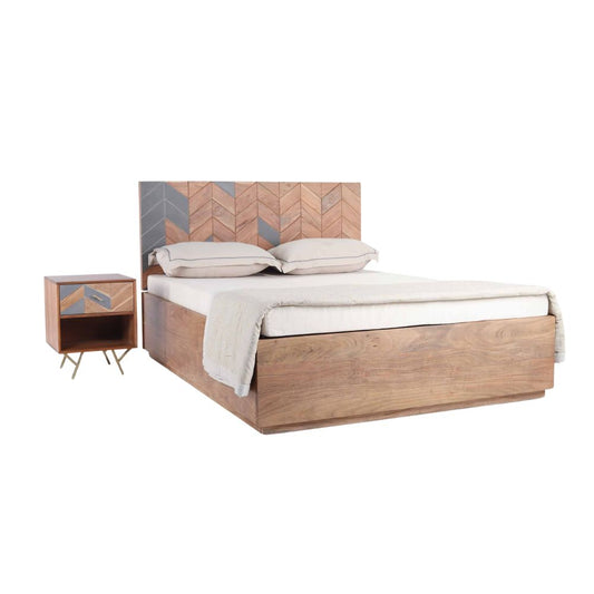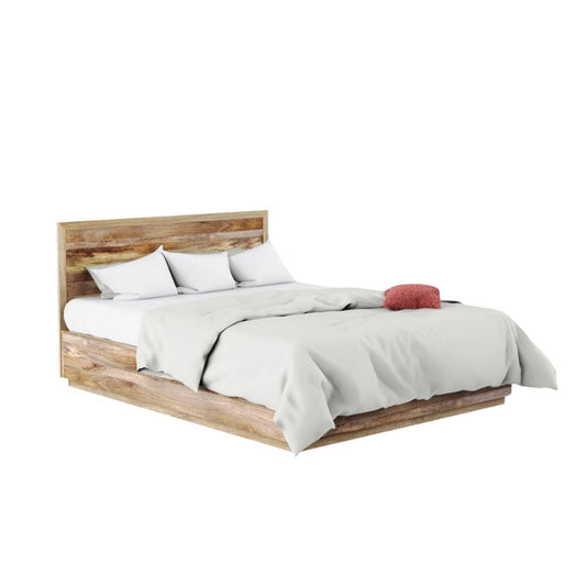 Acacia Wood Bed with Flat Panel Headboard – Natural Finish,