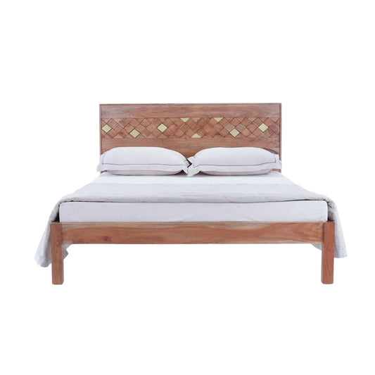 Handcrafted Queen Size Bed Made of Solid Acacia Wood & Plywood with Rich Brown Finish – Durable, Stable & Elegant Bedroom Furniture