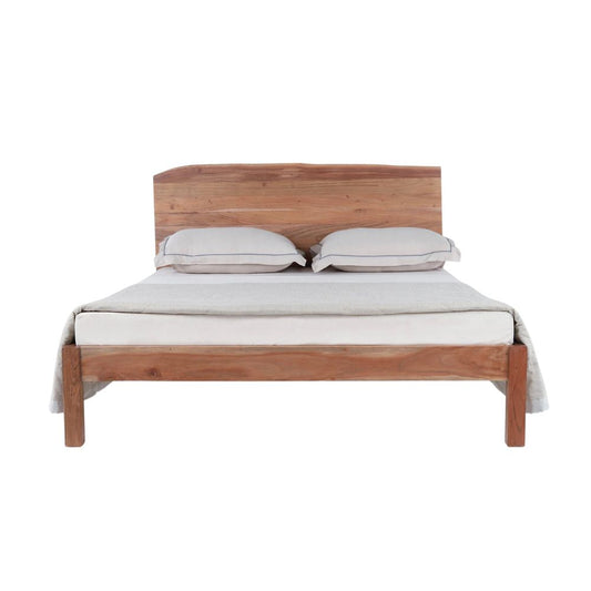 Acacia Wood Bed Frame – Flat Panel Headboard, Natural Finish