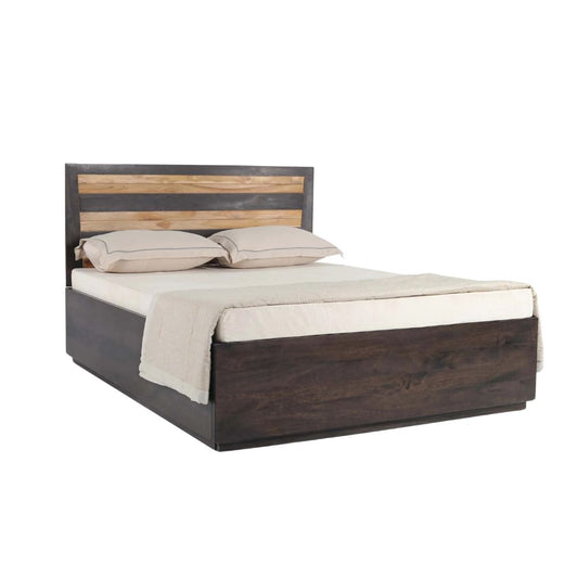 Acacia Wood Bed with Flat Panel Headboard – Walnut Finish