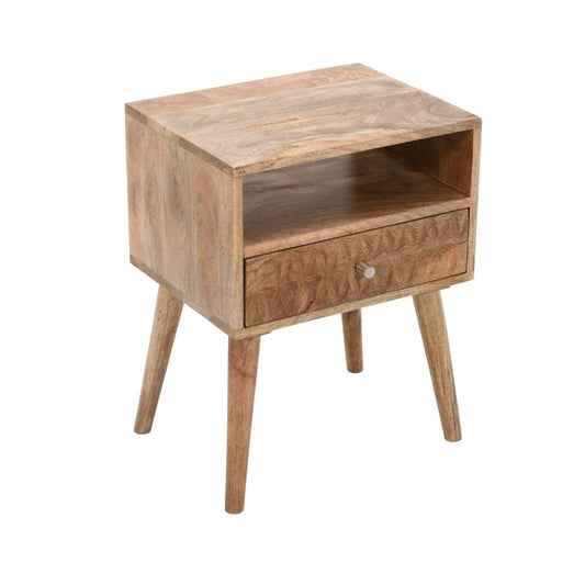 Marlow Light Mango Wood Bedside Table with 1 Drawer & Open Slot