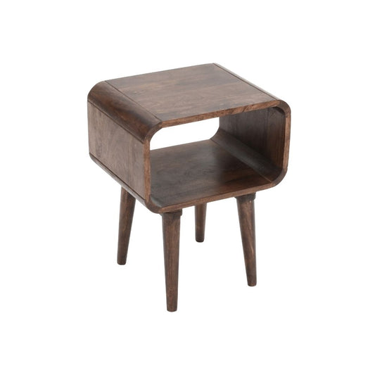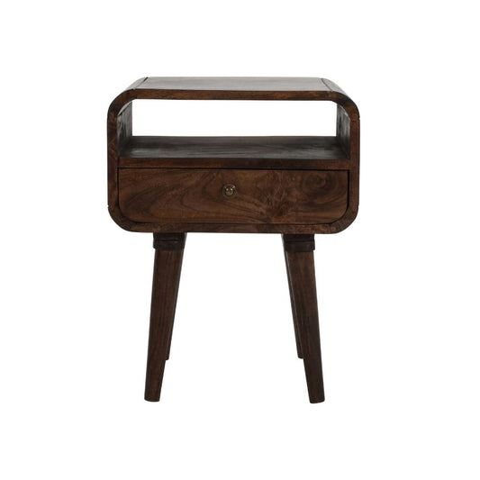 Franklin Dark Mango Wood Bedside Open Curve Edges Table