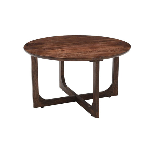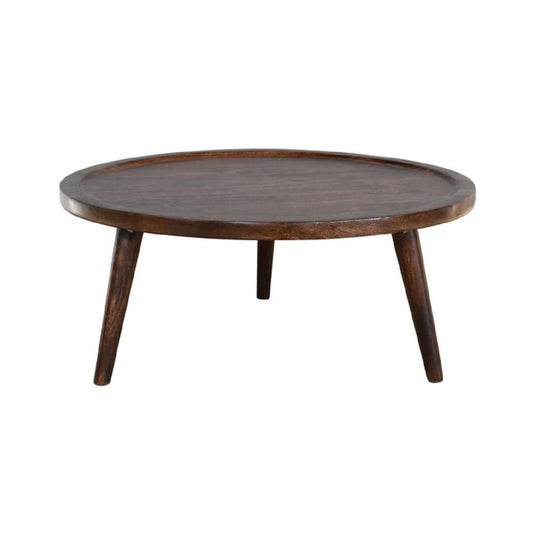 Natural Solid Dark Mango Wood Round Low Coffee Table