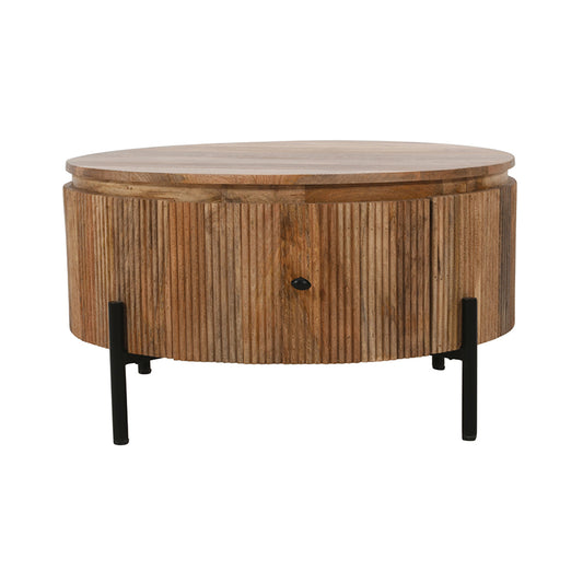 Rajsamand Furniture Natural Solid Wood Coffee Table & 1 Drawer With Metal Legs