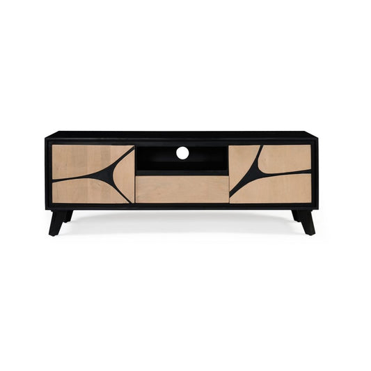 Solid Mango Wood 2 Door & 1 Drawer Tvc Black