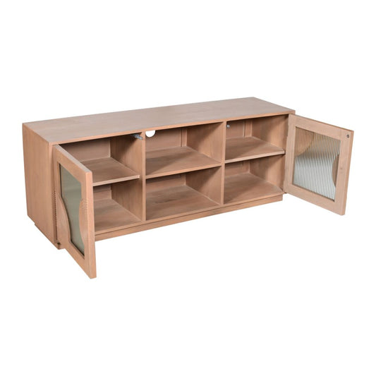 Elegant Mango Wood TV Unit with Storage & Glass Doors