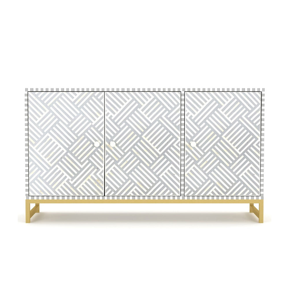 Floral Bone Inlay Light Grey Sideboard
