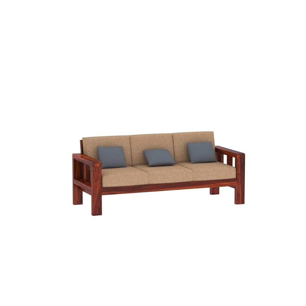 With its broad armrests, slatted detailing, and rich honey-toned finish, this wooden sofa ensemble adds a grounded yet graceful charm to your living space. Designed to offer timeless appeal with practical flair, it complements both modern and traditional interiors effortlessly.