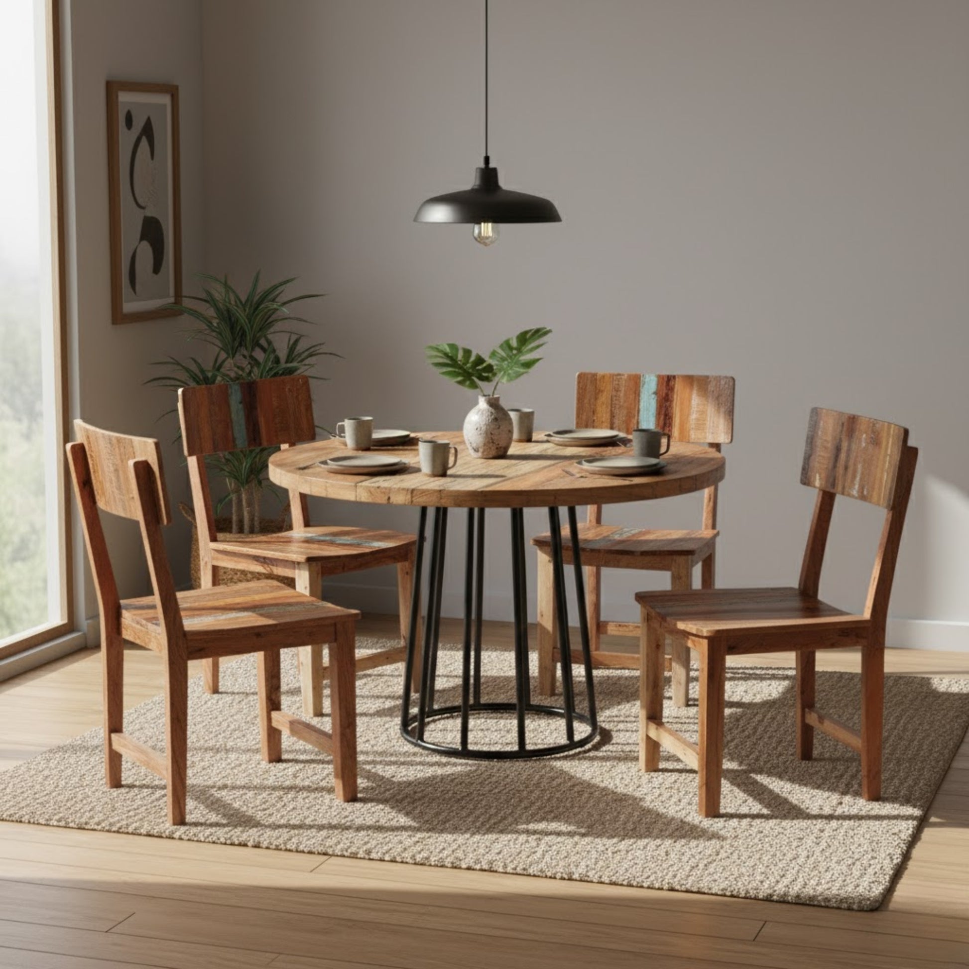 Reclaimed Style Round Dining Table With 4 Seater Chair-Dining Table Set